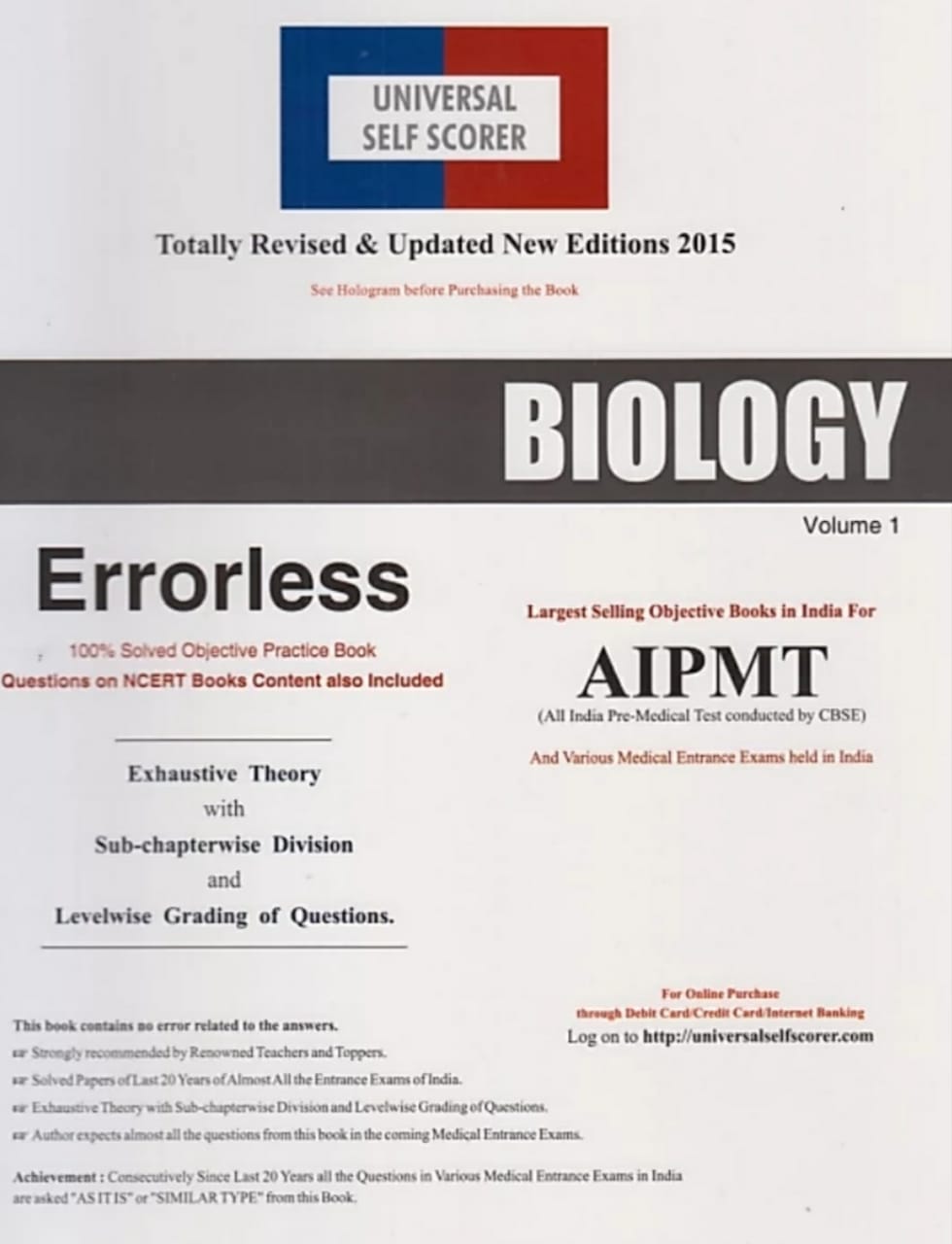 Errorless Biology for NEET/AIIMS ( Set of 2 Volume) (English , Universal Book Depot )